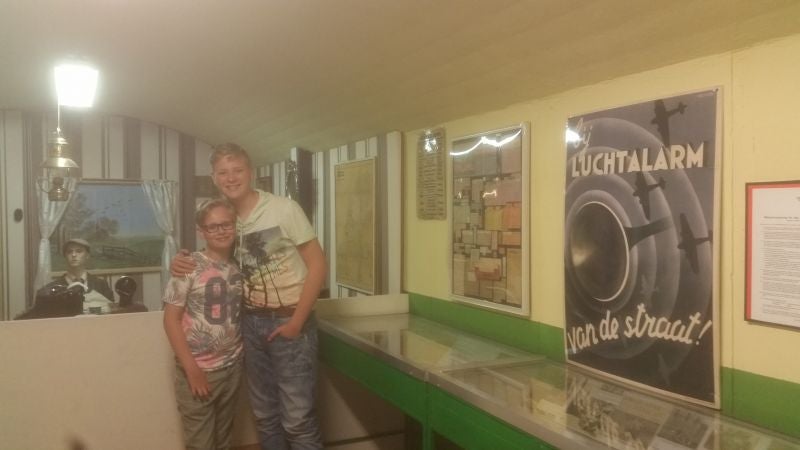 Ik ben afgelopen zondag (6-6-15) samen met mijn broertje en mijn moeder naar fort Veldhuis geweest in Heemskerk. Ik hou heel erg van dit soort musea omdat ik het geweldig vind wat je soms nog kan terugvinden van vroeger uit de oorlogstijd. We zagen onder andere een mittrailleur en een teruggevonden revolver die helemaal kapot en verroest was, natuurlijk waren er niet alleen maar geweren maar ook oude vliegtuigwielen en helmen/gasmaskers van oorlogssoldaten. Er werd in het museum iets omgeroepen dat er een lezing bleek te zijn. Mijn moeder leek het leuk om daarnaar toe te gaan, en dat deden we. Het was een man die zich helemaal had verdiept in dit onderwerp, en allemaal dingen had teruggevonden in de achterhoek, want er bleek in de Bijland een vliegtuig neergestort te zijn rond de 2e wereldoorlog. deze lezing duurde rond de 3 kwartier a een uur. We kregen het koud in de bunker want er is natuurlijk geen centrale verwarming. We hebben nog een paar foto's gemaakt en gingen weer lekker de warme buitenlucht in. Zo heb ik mijn middagje wel eventjes vermaakt in de bunker met mijn moeder en broertje.